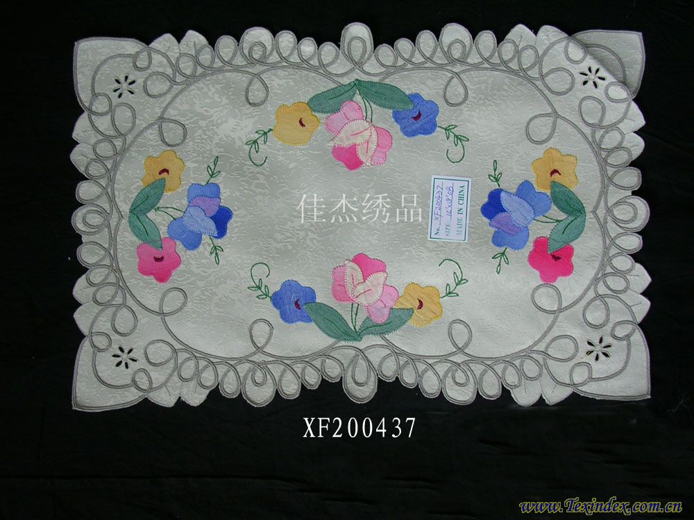 補(bǔ)花盤墊  規(guī)格33*48/30*45/15*30 纖維材料100%滌 品種盤墊 織制方法補(bǔ)繡 工藝特點(diǎn)手工 產(chǎn)地山東 淄博