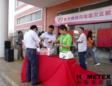 5月17日下午,東方刺繡舉辦了“向地震災區(qū)獻愛心”活動,公司董事長王仁愛帶頭為災區(qū)人民捐款,緊接著各個部門領導及其他員工也伸出了援助之手。