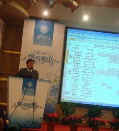 發(fā)布會上,運營中心總監(jiān)閆愛兵先生發(fā)表了重要講話,他深入總結了惠誼的發(fā)展的三個時期:快速起步階段、調整陣痛期、穩(wěn)步發(fā)展期。分析了多變的2009年,并對09年的工作進行了回顧,對各地的銷售業(yè)績、網絡拓展、品牌推廣及促銷活動、道具形象、產品包裝、產品開發(fā)、團隊建設等方面進行了歸納和總結。對目前惠誼存在的問題進行理性地分析,并提出改善的建議。在此基礎上有的放矢地制訂了2010年的工作計劃,仍然突出一個“多變”的理念。最后用美國總統(tǒng)奧巴馬的一句話來提升主題:“Change! It is what believe in.(變革!源自我們的信念。)” 將整場發(fā)布會推向高潮,博得與會嘉賓們的陣陣喝彩。